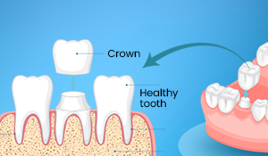 A crown completely covers a tooth above the gum line. This is in contrast to a dental veneer, which only covers a tooth's front surface and needs natural tooth structure to support it. Therefore, if a tooth is missing a significant amount of structure above the gum line, a crown would be the restoration of choice.